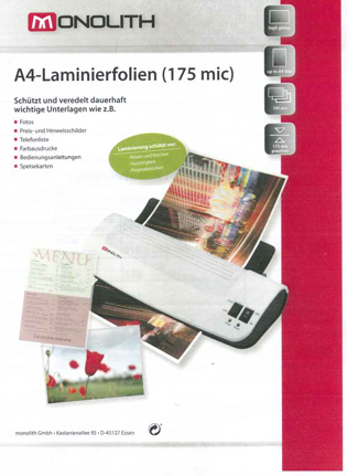 Laminierfolien 125mic A4 Matt Betriebsausstattung Guenstig At