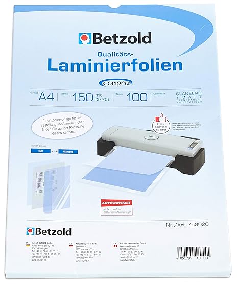 Betzold 758020 Laminierfolien Set A4 100 Folien Zum Laminieren Matt Glanzend 150 Mic